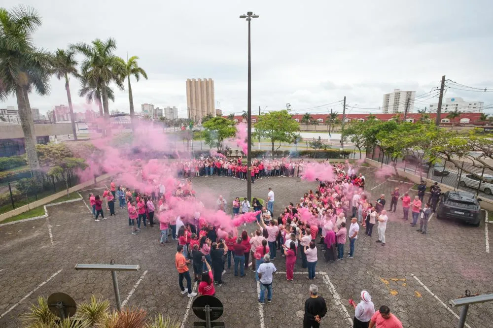 O fim da Campanha Outubro Rosa, em Praia Grande, foi marcado pela união de servidores que atuam em secretarias sediadas no Paço Municipal e ainda em suas proximidades. Logo após o encerramento do expediente, os funcionários se reuniram para uma ação simbólica, um “Abraço Rosa”, que ocorreu no estacionamento do Paço.